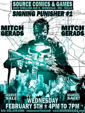 Mitch Gerads appears at Source Comics & Games on Wednesday February 5, 2014 from 4:00 till 7:00pm to celbreate the release of Punisher #1!