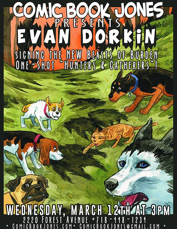 Evan Dorkin appearsĀ at Comic Book Jones on Wednesday March 12th for a Beasts of Burden signing from 3:00 pm till whenever!