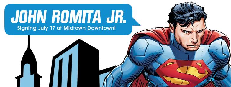 Artist John Romita Jr. and *just added* inker Klaus Janson appears at Midtown Comics Downtown on Thursday July 17th from 6:00 – 8:00 pm to celebrate his first-ever work for DC Comics, SUPERMAN #32! Midtown Comics will also be selling a number of incentive covers on the day of the signing!