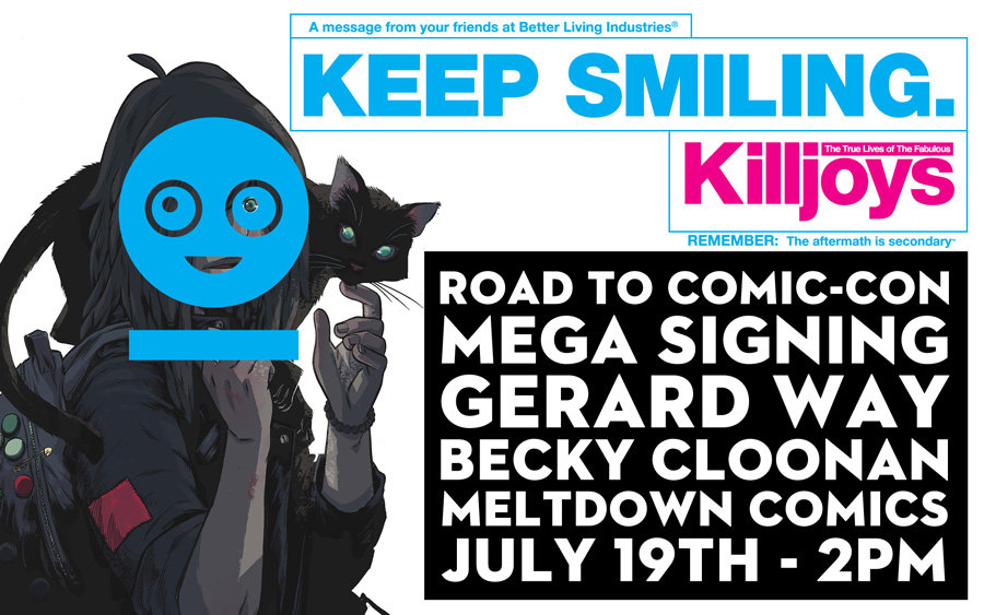Writer Gerard Way and artist Becky Cloonan appear at Meltdown Comics on Saturday July 19, 2014 at 2:00 pm to sign The True Lives of the Fabulous Killjoys! Come say hello, give high-fives get stuff signed and stick around for all the talent that will be present!