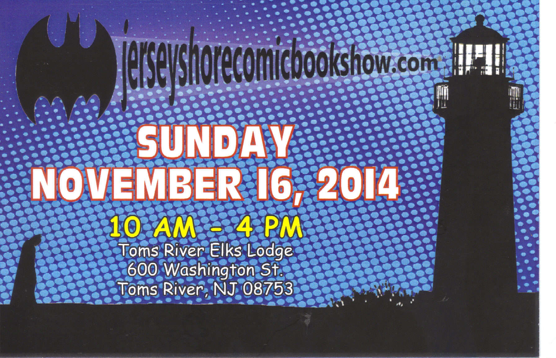 The Jersey Shore Comic Book Show will be hosting another show on Sunday, November 16, 2014 at the Toms River Elks Club, 600 Washington Street Toms River, New Jersey for what promises to be yet another GREAT show for everyone attending.