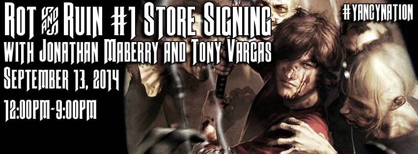 Meet Jonathan Maberry and Tony Vargas in person on Saturday, September 13th at noon at Yancy Street Comics for the official release party for IDW’s Rot & Ruin #1! Come and get your copy signed!