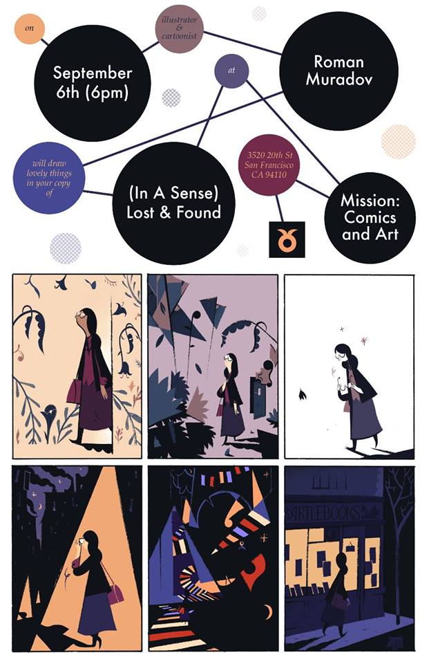 Roman Muradov appaears at Mission: Comics & Art on Saturday, September 6th at 6:00 pm to sign his first graphic novel, (IN A SENSE) LOST & FOUND published by No Brow Press!