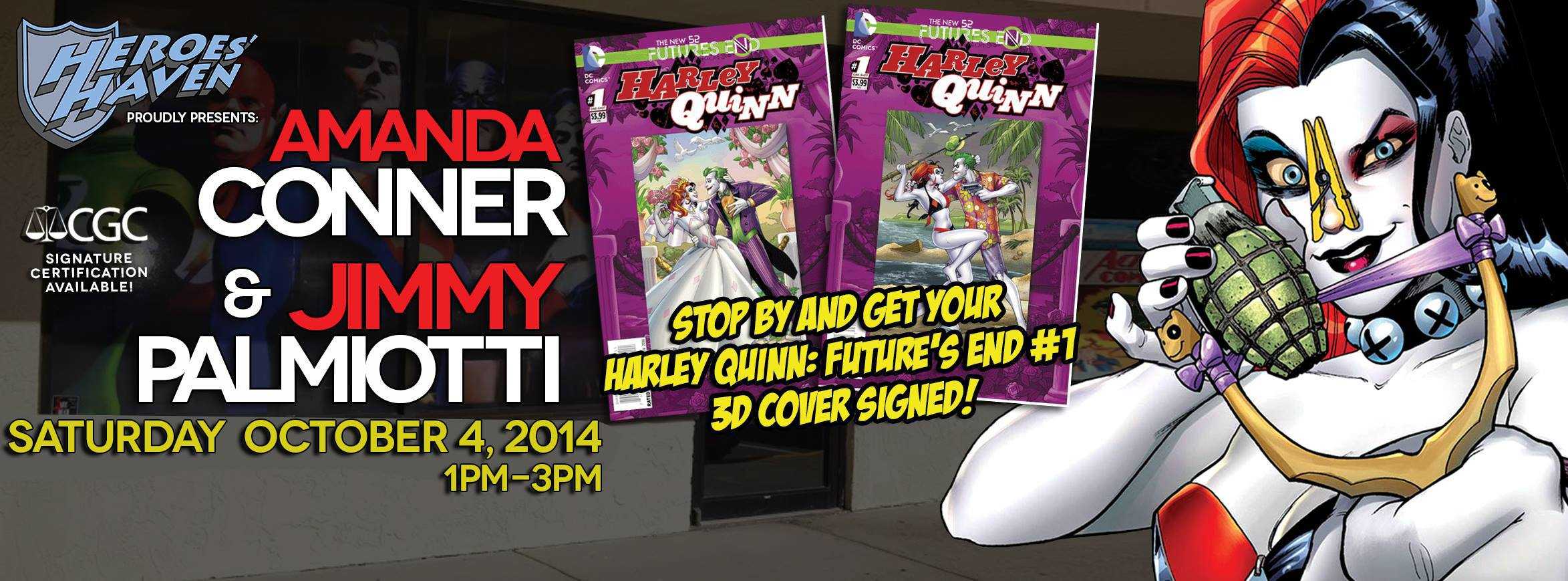 Jimmy Palmiotti and Amanda Conner appear at Heroes Haven Comics on Saturday, October 4th from 1:00 – 3:00 pm to celebrate the release of Futures End: Harley Quinn #1! Get a glimpse into the future of what could be THE issue that changes Harley and The Joker relationship forever! – “Harley and The Joker make it legal at last! Follow the happy couple to their secret honeymoon spot, where it’s literally till death do they part!”
