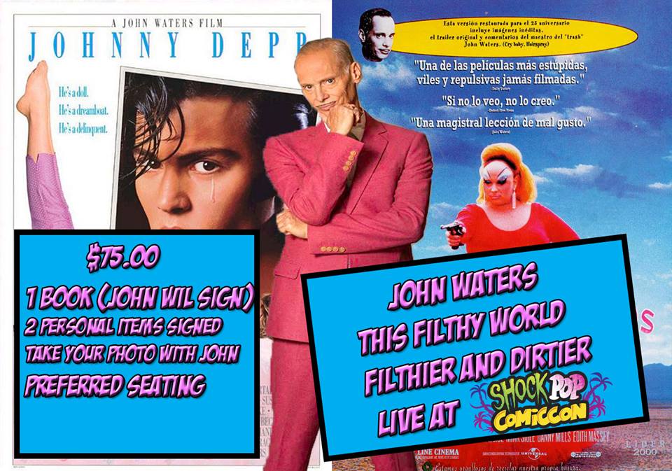 Shock Pop Comiccon proudly presents, John Waters “This Filthy World: Filthier and Dirtier”, live on Saturday February 14th time TBA.