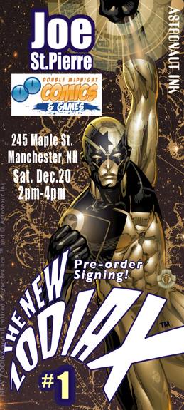 Joe St. Pierre appears at Double Midnight Comics on Saturday December 20th from 2:00 PM till 4:00 PM to sign THE NEW ZODIAX #1.