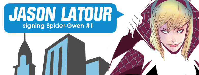 Writer/artist Jason Latour appears at Midtown Comics Downtown on Thursday, February 26th from 6:00-8:00 PM for a signing of Marvel’s Spider-Gwen #1!