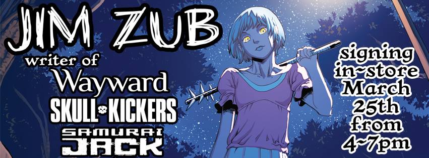 Jim Zub, writer of Wayward, Skullkickers, and Samurai Jack, appears at The Silver Snail on Wednesday March 25th from 4:00 – 7:00 PM!
