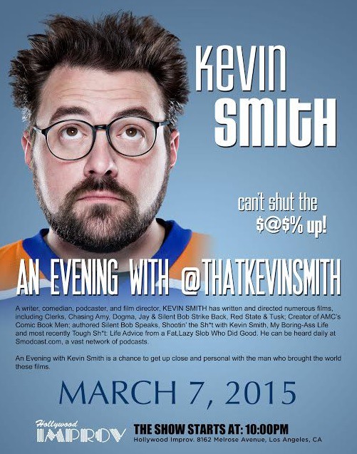 Kevin Smith appears at the Hollywood Improv on Saturday March 7, 2015 at 10:00 PM! Get tickets ($25) at the link!