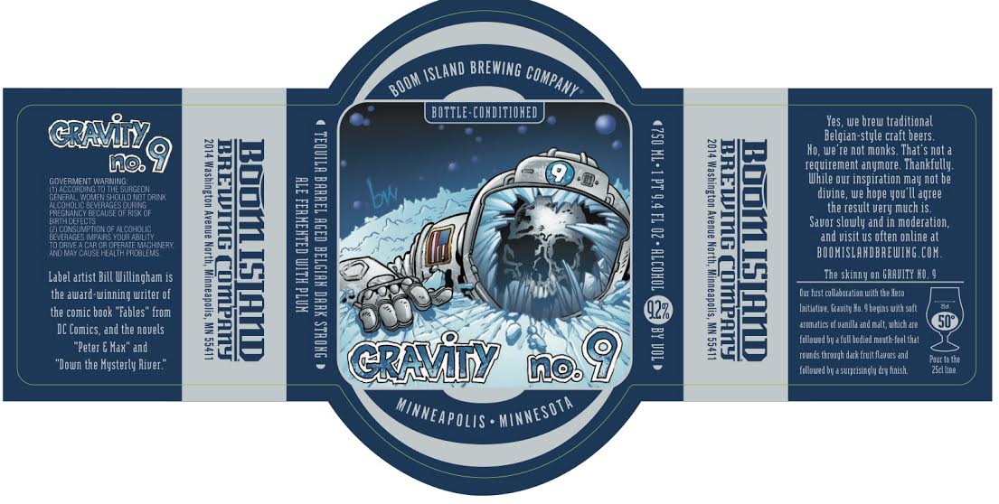 Boom Island Brewing Company is proud to announce a unique fundraising event aimed at comic book and craft beer aficionados on Friday, May 1, 2015. Renowned comic writer/artist Bill Willingham (Fables, Fairest, Jack of Fables) will autograph the personally designed label of Boom Island Brewing Company’s Belgian strong “Gravity No. 9.” A portion of the proceeds from this event will be donated to the Hero Initiative, a non-profit organization created to support comic artists and writers in need of emergency medical aid or financial support.