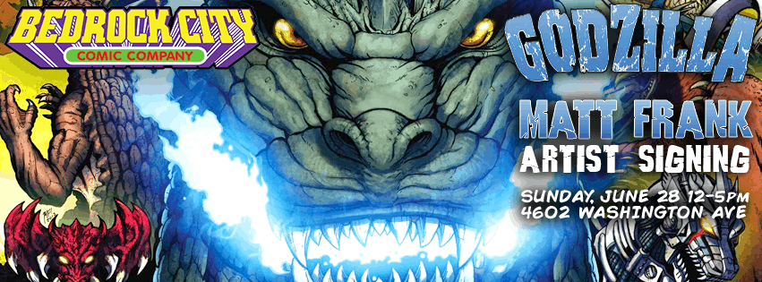Artist Matt Frank appears at Bedrock City Comic Co. on Sunday, June 28, 2015 from noon till 5:00 PM to sign his final issue of GODZILLA!