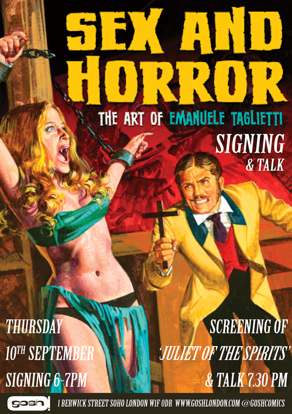 Artist Emanuele Taglietti appears at Gosh Comics for a signing from 6:00-7:00 PM followed by a talk and screening of ‘Juliet of the Spirits’ from 7.30pm on Thursday 10th September. Seats for the talk and screening are limited and tickets can be bought at the link.