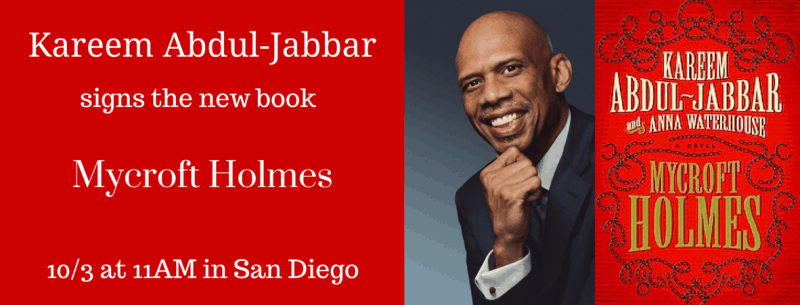 NBA legend and author Kareem Abdul-Jabbar appears at Mysterious Galaxy Books on Saturday, October 3, 2015 at 11:00 AM to sign MYCROFT HOLMES!
