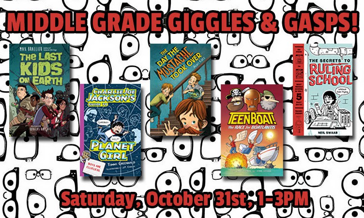 An afternoon of tales filled with laughs and adventure begins at 1:00 PM on Saturday, October 31st, as five hilarious authors stop by Books of Wonder for panel sure to have you in stitches. MAX BRALLIER debuts The Last Kids on Earth, a graphic novel told in a mixture of text and black-and-white illustrations about what happens with a monster apocalypse comes to town; TOMMY GREENWALD presents Charlie Joe Jackson’s Guide to Planet Girl, the story of how Charlie Joe Jackson finds a guidebook to Planet Girl and suddenly becomes his Middle School’s love doctor and Crimebiters #1: My Dog is Better Than Your Dog in which a young boy discovers that his new dog just might be a crime-fighting vampire!; ALAN KATZ shares The Day the Mustache Took Over, the tale of twin brothers who manage to scare off every babysitter, until they meet the mustached Martin Healey Discount, who proves that babysitters can make trouble, too; DAVE ROMAN brings book two in the Teen Boat! series, Teen Boat!: The Race for Boatlantis, an illustrated novel about the city Boatlantis, where being half boy/half boat is seen as a gift, not the curse Teen Boat always thought it was and the latest in his graphic novel adaptations of R.L. Stine’s classic Goosebumps, Slappy’s Tales of Horror; and NEIL SWAAB shines a light on his latest book, The Secrets to Ruling School (Without Even Trying), a story about and guide to surviving the first week of Middle School (i.e. The Worst Place in the Entire World).