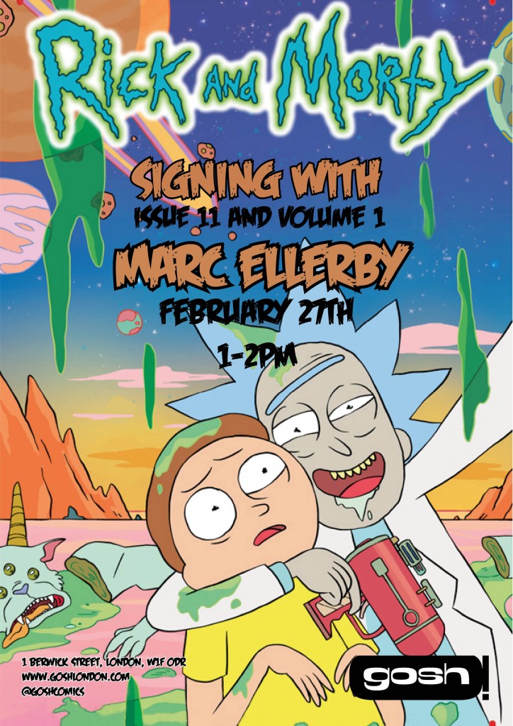 Marc Ellerby (Chloe Noonan, Doctor Who, The Regular Show) appears at Gosh Comics to sign the latest issue and Volume 1 of Rick and Morty from 1:00 – 2:00 PM on Saturday 27th February 2016.