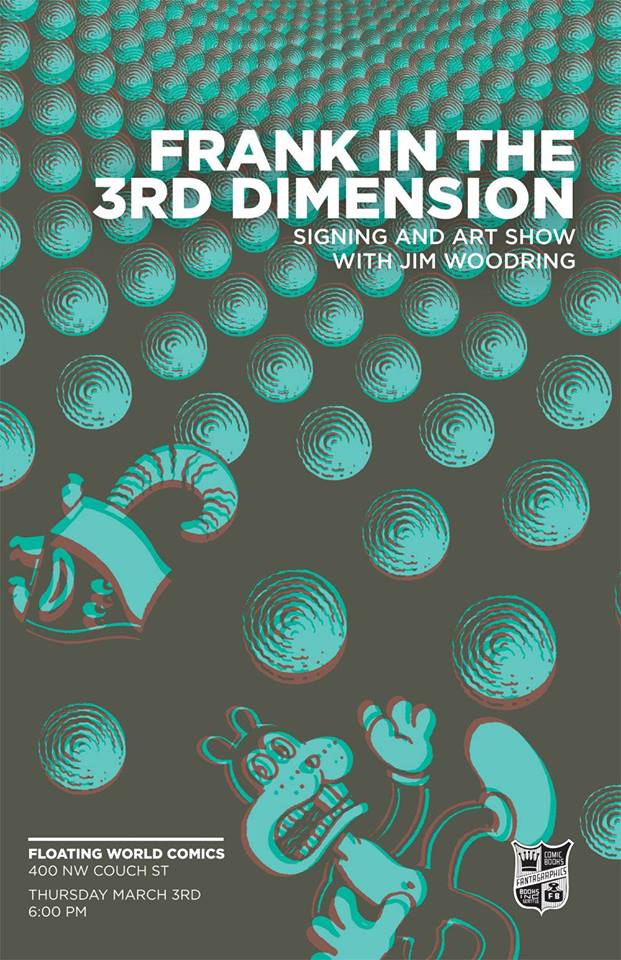 Cartoonist Jim Woodring appears at Floating World Comics for the Frank in the 3rd Dimension release party and exhibit on Thursday March 3, 2015 from 6:00 – 9:00 PM!