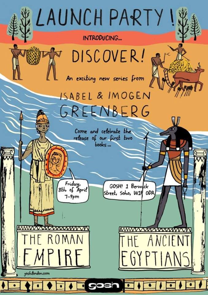Gosh! Comics hosts the launch party for the new series by Isabel & Imogen Greenberg, ‘Discover!’ with the first two titles ‘The Roman Empire’ and ‘The Ancient Egyptians’. The launch will be Friday, April 8th from 7-9pm.