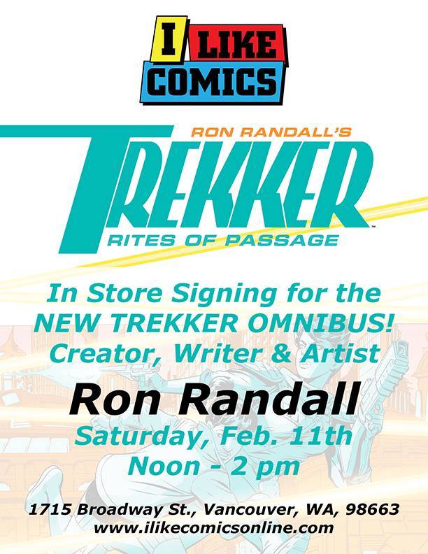 Writer/artist Ron Randall appears at I Like Comics on Saturday, February 11, 2017 from noon till 2:00 PM to sign the new TREKKER graphic novel.