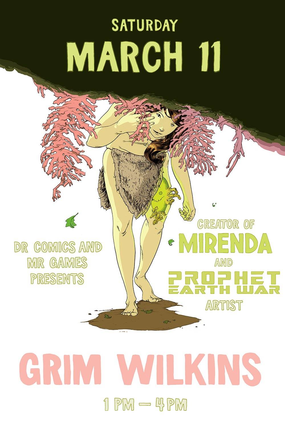 Grim Wilkins, creator of Mirenda and artist of Prophet: Earth War, Dr. Comics & Mr. Games on Saturday, March 11, 2017 from 1:00 – 4:00 PM.