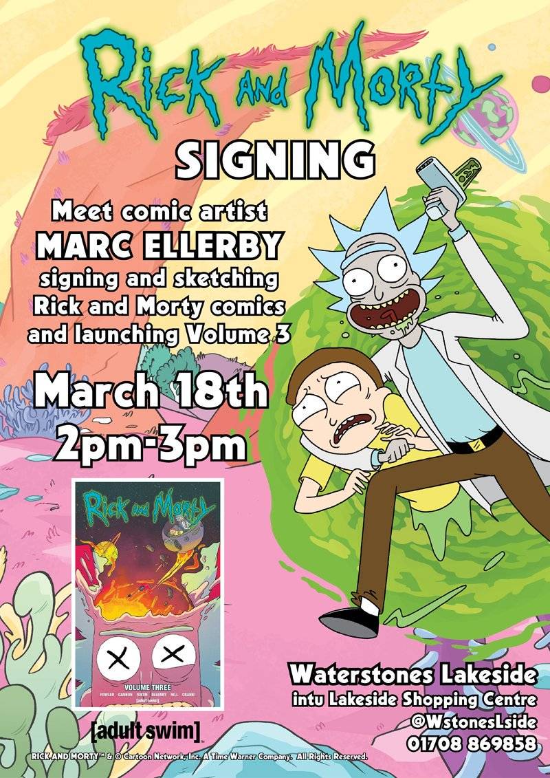 Marc Ellerby signs Rick & Morty comics at Waterstones on 18th March from 2:00 – 3:00 PM.