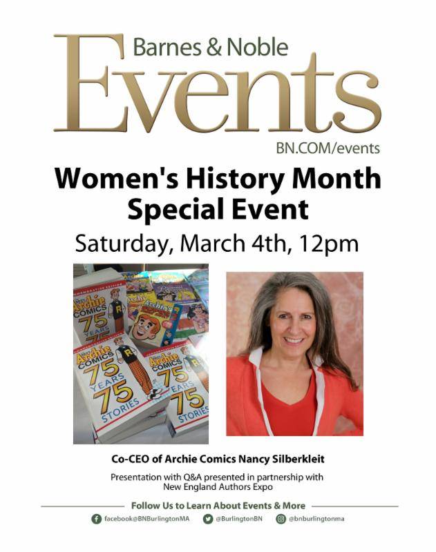 Nancy Silberkleit, co-CEO of Archie Comics, appears at Barnes & Noble on Saturday, March 4, 2017 at noon to give a special presentation with a Q&A in honor of Women’s History month!