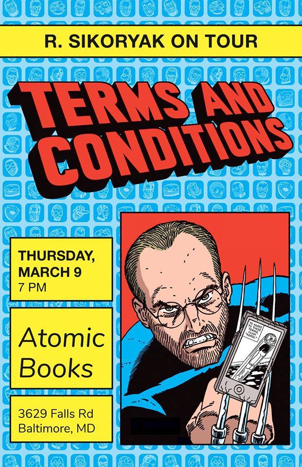 New Yorker cartoonist R. Sikoryak appears at Atomic Books on Thursday, March 9th at 7:00 PM for a presentation on the process behind Terms and Conditions, followed by a book signing.