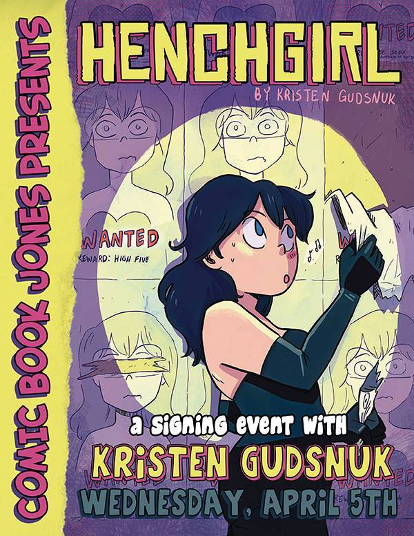 Comic Book Jones is excited to welcome Kristen Gudsnuk, writer/artist/creator of Henchgirl, for a signing on Wednesday April 5th from 1-8pm.