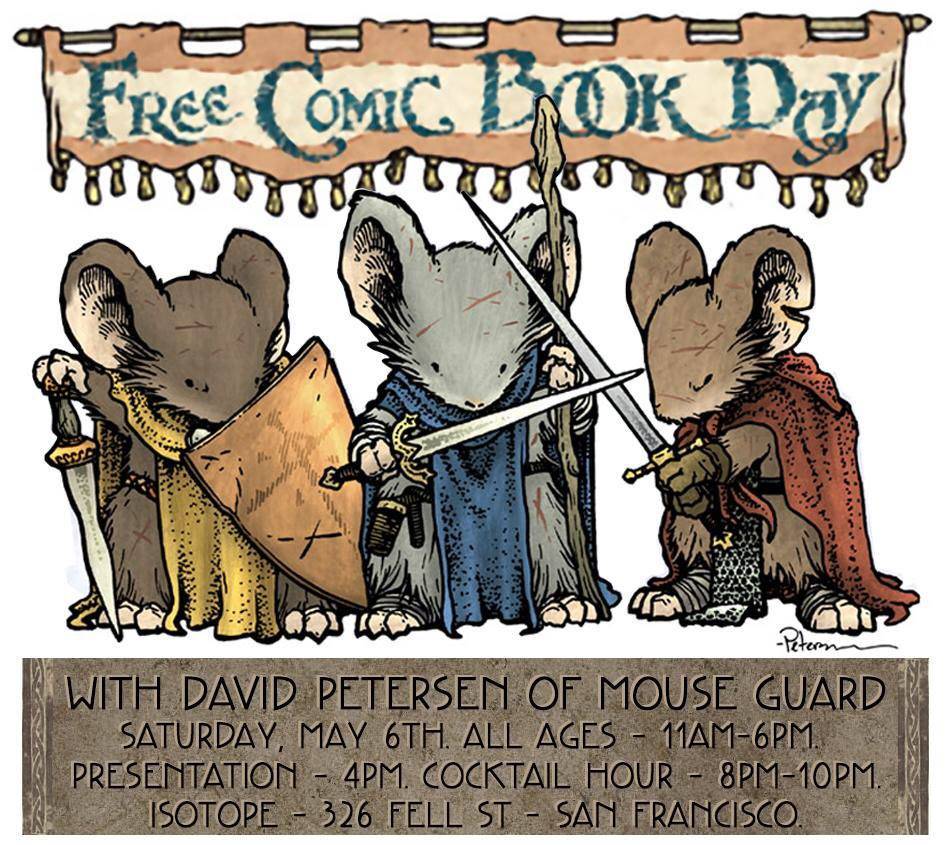 Isotope proudly presents David Petersen, author-artist the the insanely popular MOUSE GUARD series on Saturday May 6, 2017!