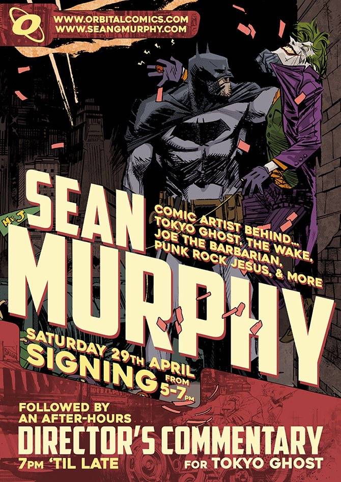 Writer/artist Sean Murphy (Punk Rock Jesus, Joe the Barbarian, The Wake) will be stopping by Orbital Comics in a rare UK appearance for a signing on SATURDAY 29TH APRIL from 5:00 – 7:00 PM, followed by an after-hours Director’s Commentary for his creator-owned title, Tokyo Ghost.