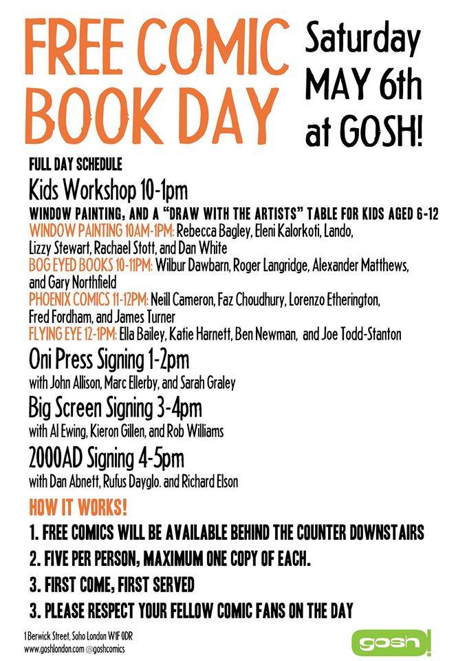 Gosh! Comics celebrates Free Comic Book Day on Saturday, May 6, 2017 will art workshops, creator signings, and free comics!