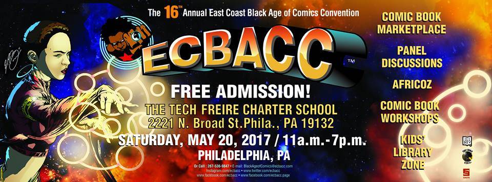 Gather with friends old and new at the 16th Annual East Coast Black Age of Comics Convention! Bring your costume, your artwork, your story ideas, or your passion to the TECH Freire Charter School at 2221 N Broad St., Philadelphia, PA on May 20, 2017, 11 am to 7 pm, to get your yearly fix of positive vibes! Admission is FREE!