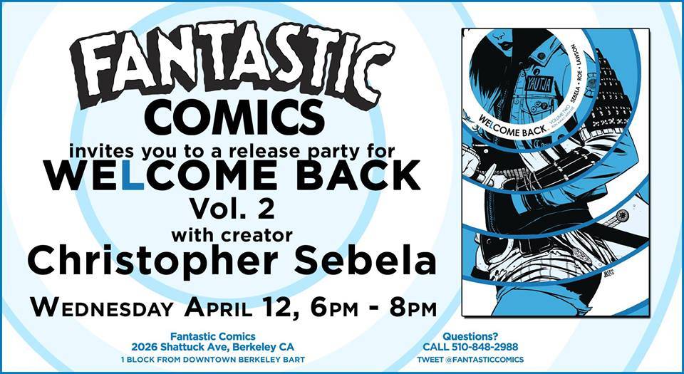 Christopher Sebela, writer of titles such as HEARTTHROB, INJUSTICE: GODS AMONG US, DEMONIC, HIGH CRIMES, DEAD LETTERS, CAPTAIN MARVEL, as well as the cult hit zines, CLOWN MOTEL and POOL DISASTER, appears at Fantastic Comics on Wednesday, April 12th at 6:00 PM