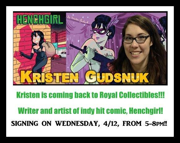 Kristen Gudsnuk, writer/artist/creator of Henchgirl, appears at Royal Collectibles for a signing on Wednesday, April 12, 2017 from 5:00 till 8:00 PM.