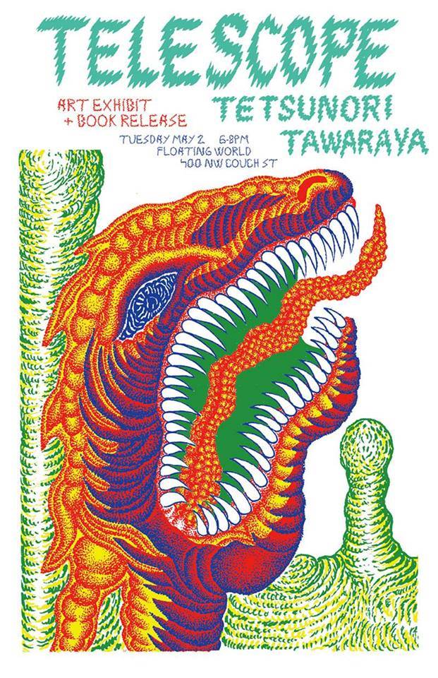 Punk musician and underground Japanese artist Tetsunori Tawaraya is coming to the West Coast this May! His tour will bring him to Floating World on Tuesday May 2nd from 6-8pmĀ to celebrate the release of his new Colour Code publication, TELESCOPE. We will have an exhibit of original artwork and other eclectic items from his tour.