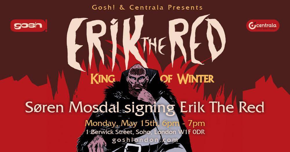 Danish author Søren Mosdal appears at Gosh! Comics to sign copies of his Centrala title Erik the Red: King of Winter on Monday May 15th from 6:00 – 7:00 PM.