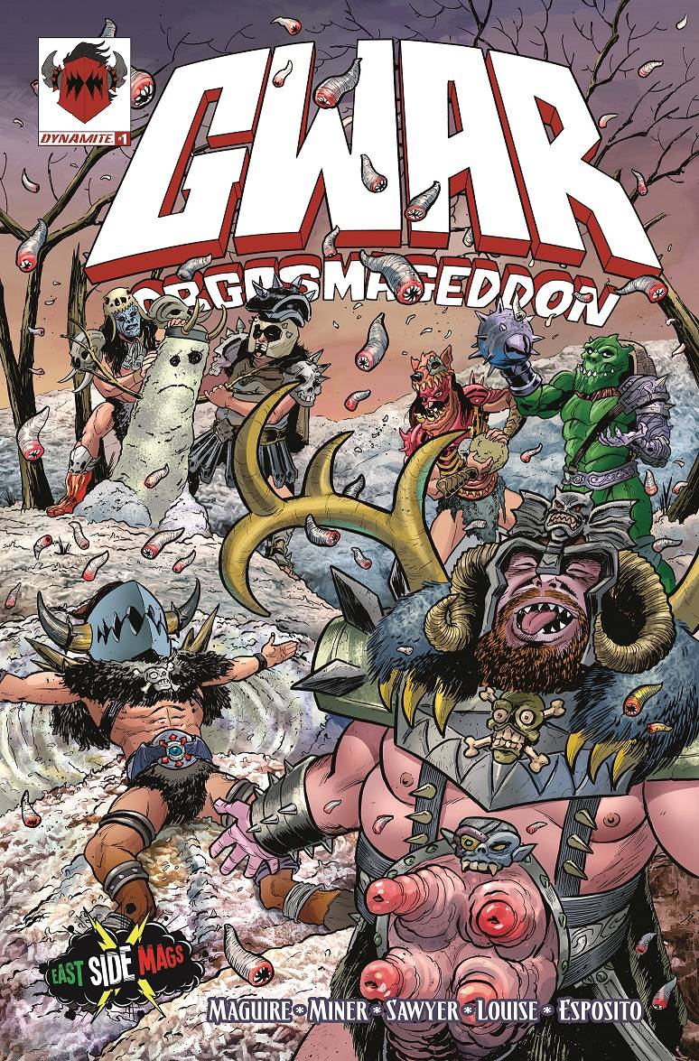 Matt Miner, Taylor Esposito, and Sean Von Gorman appear at East Side Mags on Saturday, June 17th from 1:00 – 6:00 PM to sign the exclusive variant cover of GWAR Orgasmageddon and celebrate the shop’s 3rd anniversary.
