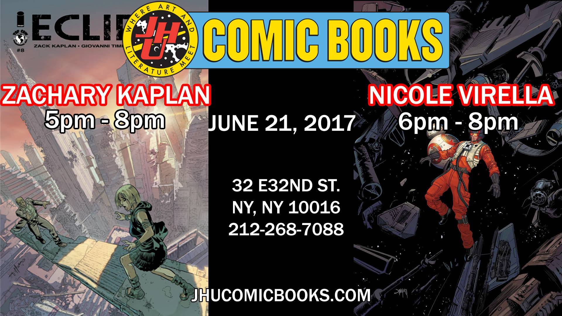 Zack Kaplan, Writer/Creator of Eclipse from Image Comics, and Nik Virella, Artist of Star Wars: Poe Dameron Annual #1, sign at JHU Comic Books on Wednesday, June 21st at 5:00 PM.