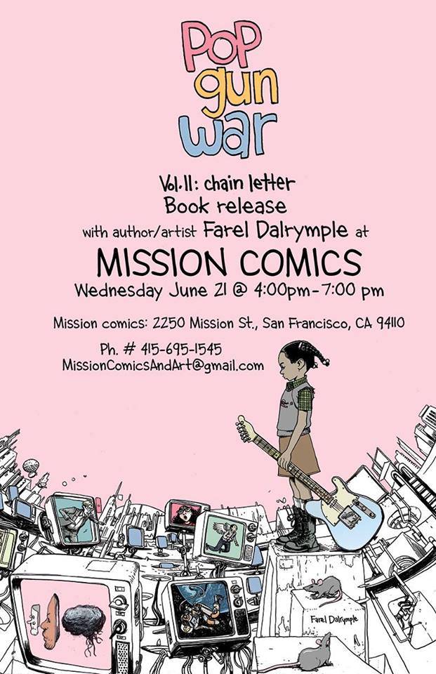 Cartoonist Farel Dalrymple appears at Mission: Comics & Art for a book release party of POP GUN WAR: CHAIN LETTER on Wednesday, June 21, 2017 from 4:00 – 6:00 PM.