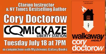 Author Cory Doctorow (Little Brother, For The Win, In Real Life) appears at Comickaze on Tuesday, July 18th at 7:00 PM to sign his latest book WALKAWAY!