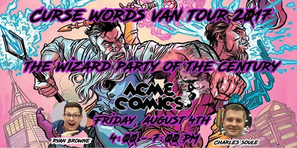 Writer Charles Soule (Daredevil, Letter 44, Poe Dameron) and artist Ryan Browne (God Hates Astronauts) appear at Acme Comics on Friday, August 4th from 4:00 till 7:00 PM signing and selling the Curse Words Van Tour EXCLUSIVE hardcover from Image Comics!