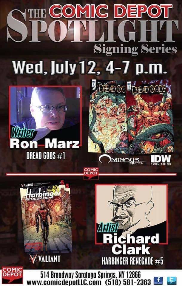 Writer Ron Marz (Dread Gods) and artist Richard Clark (Harbinger Renegade) sign at The Comic Depot on Wednesday July 12th from 4:00 – 7:00 PM!