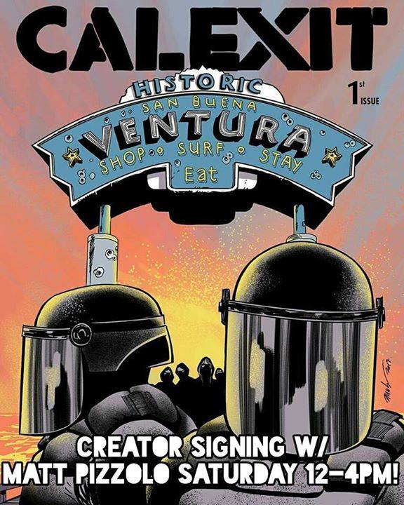 Creator Matt Pizzolo (GODKILLER) appears at Hypno Comics on Saturday, July 15 from noon till 4:00 PM to sign CALEXIT! The Ventura Exclusive Cover (limited to 250) will be available for sale at the event.