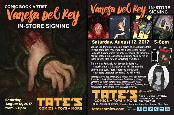 Artist Vanesa Del Rey signs at Tate’s Comics on Saturday, August 12th at 5:00 PM.
