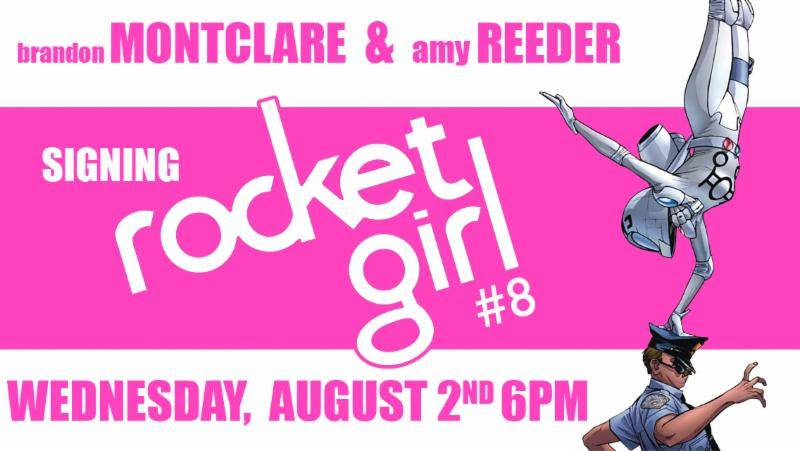 Amy Reeder and Brandon Montclare appear at Forbidden Planet on Wednesday August 2nd at 6:00 PM to sign Rocket Girl #8!