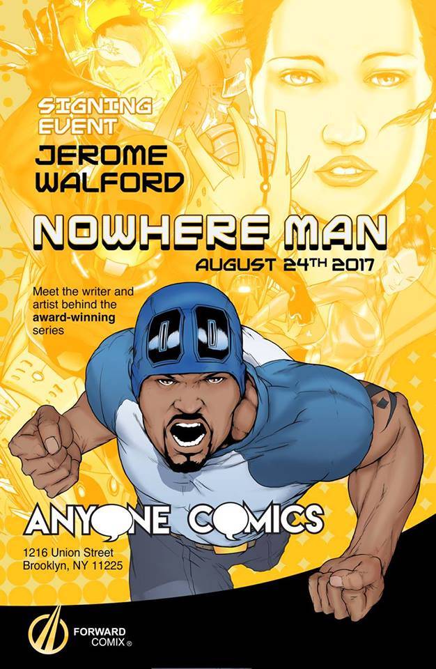 Jerome Walford appears at Anyone Comics on Thursday August 24th at 6:30 PM to sign NOWHERE MAN from Forward Comix!