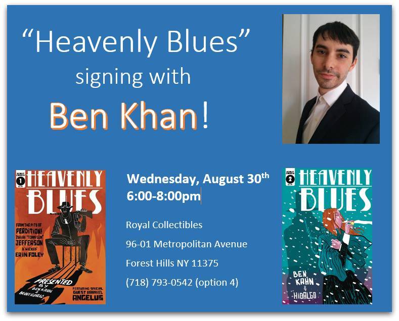 Writer Ben Kahn appears at Royal Collectibles on Wednesday, August 30th at 6:00 PM to sign HEAVENLY BLUES from Scout Comics.