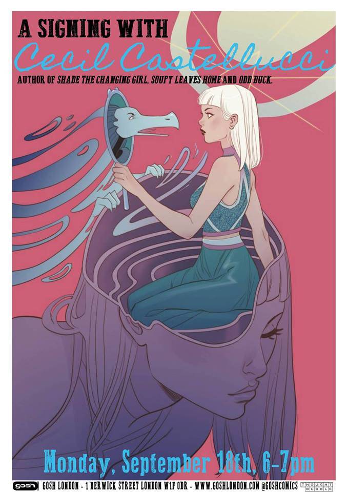 Gosh Comics is happy to have Cecil Castellucci with us again, and nicely timed with Shade the Changing Girl Vol. 1 just out! We will have her signing with us from 6:00 – 7:00 PM on Monday, September 18th.