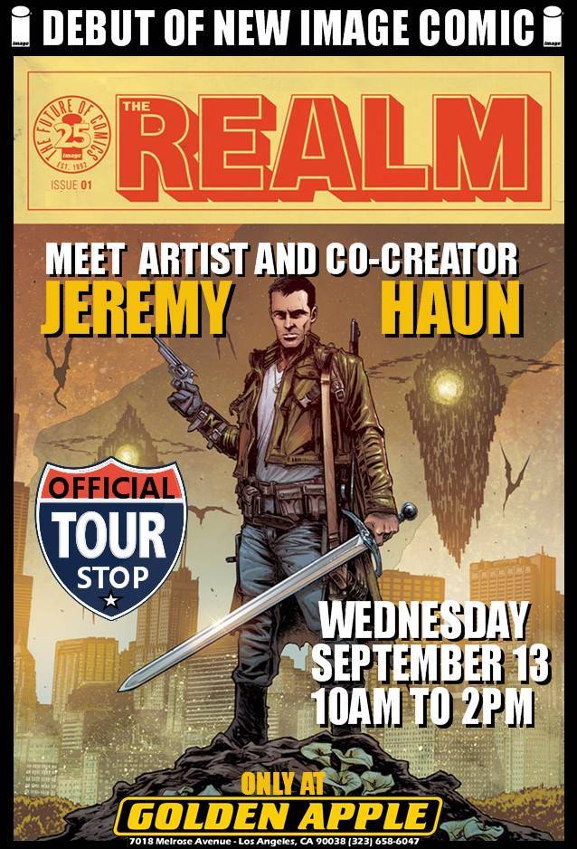 Jeremy Haun, co-creator and artist of The Realm from Image Comics, appears at Golden Apple Comics on Wednesday September 13th from 10:00 AM to 2:00 PM, the day issue number one hits shelves! Golden Apple will have a very rare limited edition “Tour Variant” cover for fans only at the event