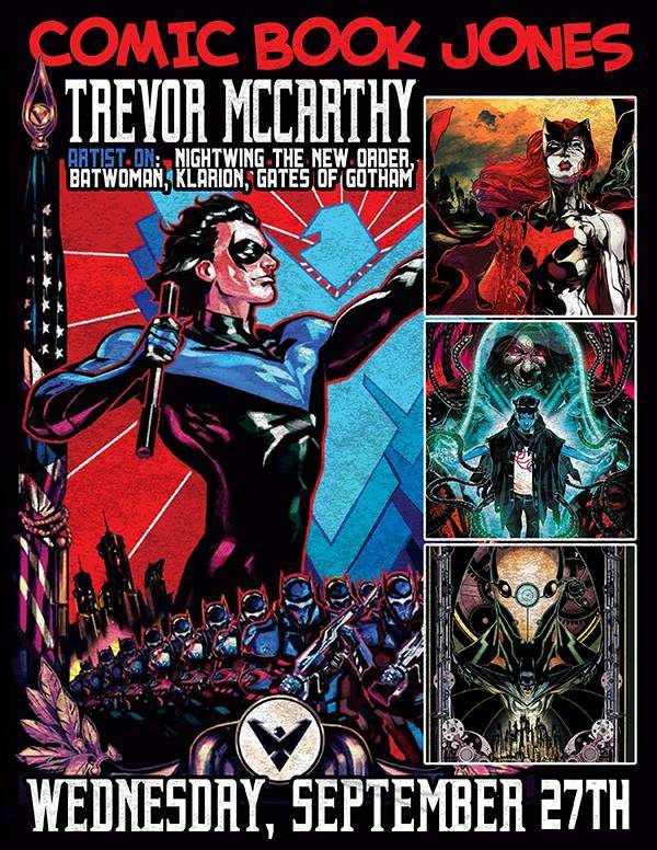 Trevor McCarthy (artist on Nightwing New Order, Batman Gates of Gotham, Klarion, Batwoman, etc) appears at Comic Book Jones from Wednesday, September 27, 2017 from 5:00 – 9:00 PM!