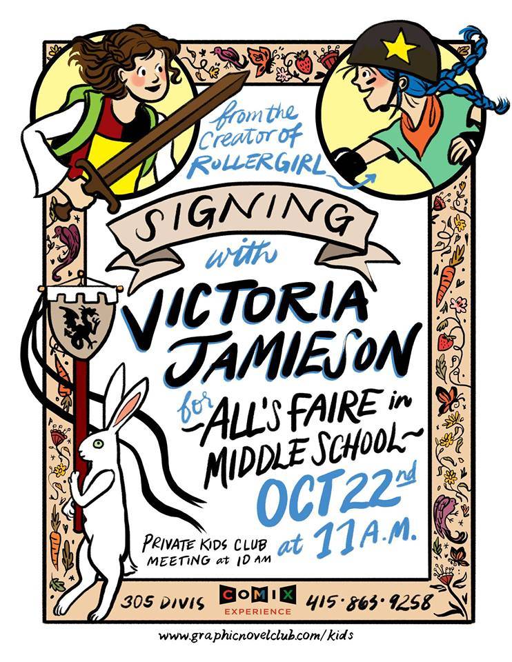 Victoria Jamieson, creator of the graphic novel Roller Girl, appears at Comix Experience on Sunday October 22, 2017 at 11:00 AM to sign her new graphic novel ALL’S FAIRE IN MIDDLE SCHOOL!
